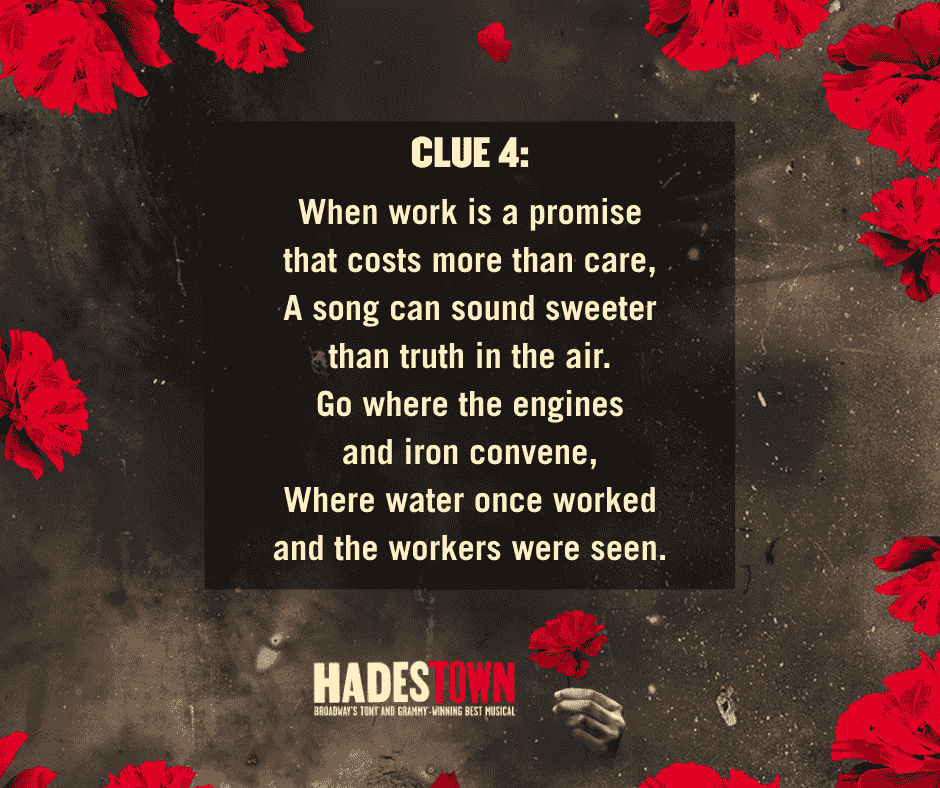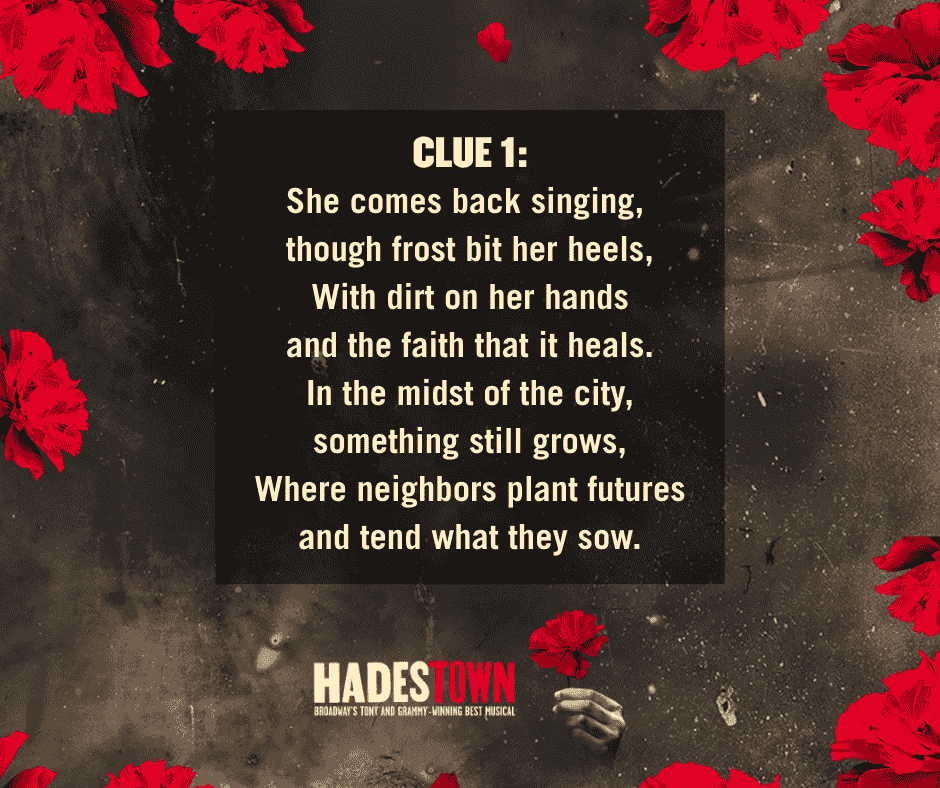 The train to Hadestown will be leaving before you know it, and you have the chance to win two tickets if you’re feeling a little adventurous! The Hadestown Scavenger Hunt Ticket Giveaway starts February 6 – make sure you bookmark this page so you can stay up to date on the hunt, including rules and a complete list of available clues.