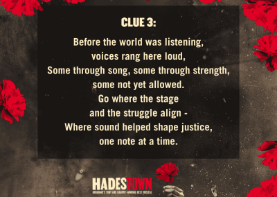 - During the Contest Period, the Sponsor will publish clues on social media that will lead participants to the locations of official Hadestown carnations.